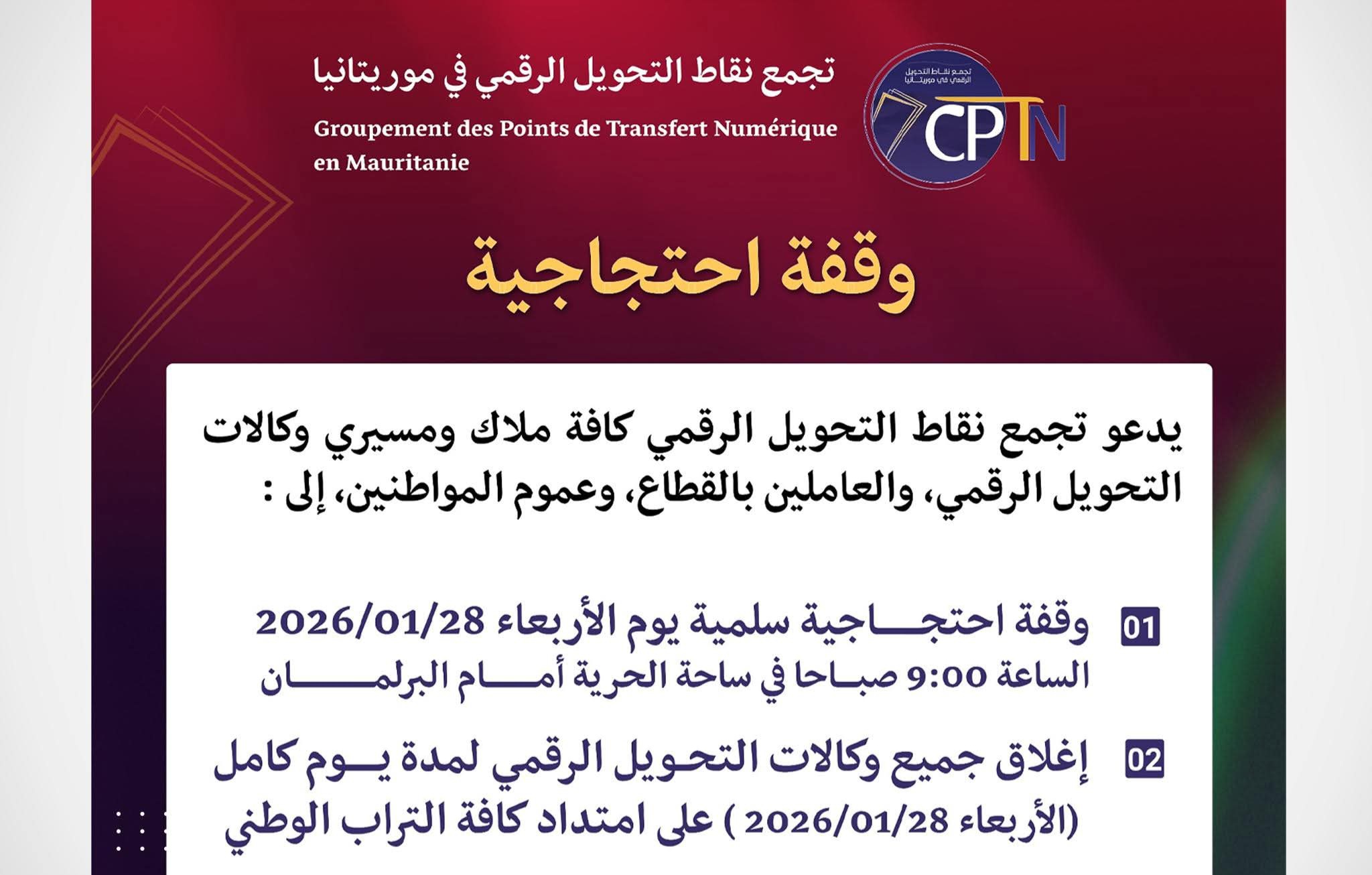 أعلن تجمع نقاط التحويل الرقمي إغلاق جميع وكالات التحويل الرقمي التابعة للوكلاء والمستثمرين، احتجاجا على فرض ضريبة جديدة بنسبة 10% على الوكلاء و0.1% على التحويلات الرقمية.