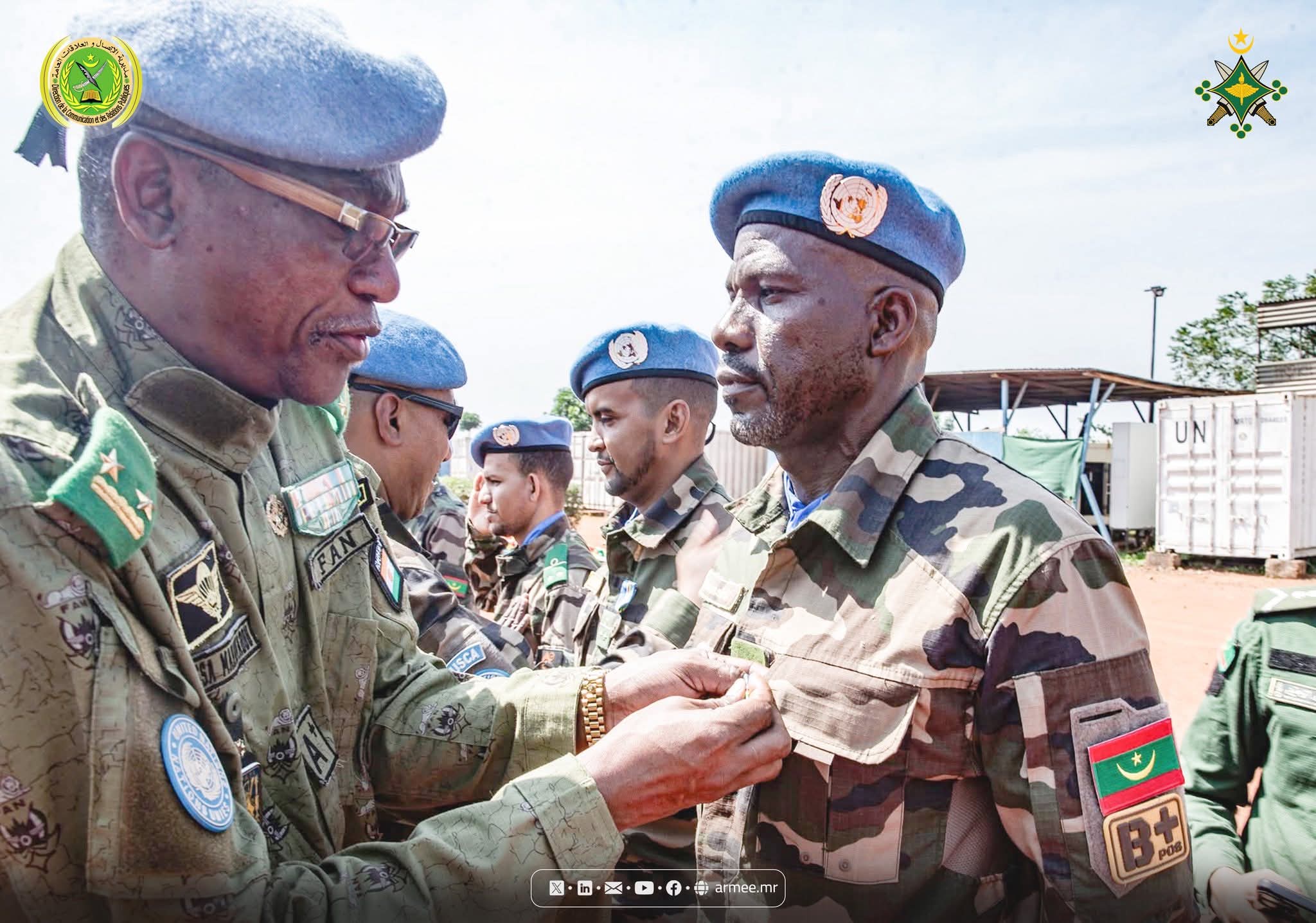 وشحت بعثة الأمم المتحدة متعددة الأبعاد لتحقيق الاستقرار في إفريقيا الوسطى (مينيسكا)، اليوم الأربعاء 19 نوقمبر 2025، في مقر قيادة البعثة ببانغي، الكتيبة الموريتانية التاسعة لحفظ السلام، بمناسبة إنتهاء مهمتها، وقد تم التوشيح بإشراف قائد القوة الأممية المساعد.