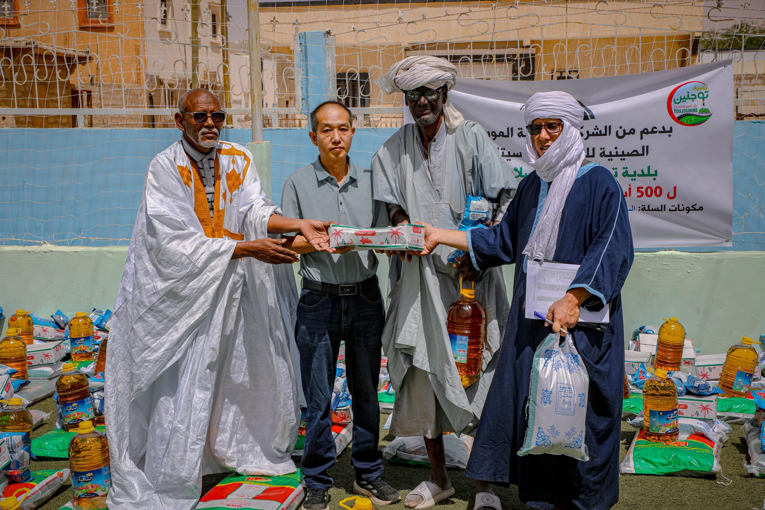 نظمت بلدية توجنين بدعم من الشركة الصينية الموريتانية الصينية للحديد ( توب سيتافير ) عملية توزيع سلات إفطار ل500 أسرة متعففة في محيط الشركة، وتتكون السلة من : السكر 5 كلغ ، التمر 4 كلغ ، مكروني 10 كلغ ، الزيت 5 لتر .